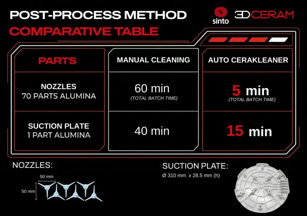 Sie ist da! Der AUTO CERAKLEANER, unsere neue automatisierte Reinigungsmaschine speziell für 3D-gedruckte Keramikteile. Sie wurde entwickelt, um Ihre Produktionslinie zu optimieren und Ihre Herstellungskosten pro Bauteil zu senken.